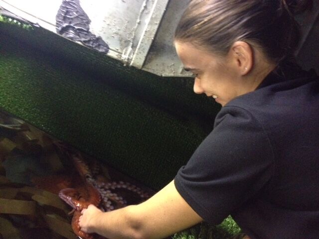 I’m actually more of a mammal person, so I debated about that in moving to the aquarium because I love mammals. Fortunately we have mammals at the aquarium too, and it’s turned out to be a great decision for me. I feel like it’s helped me to reach out and explore new things. I enjoy learning all the fish species and love living by the Florida Aquarium vision, which is to protect and restore our blue planet. My new favorite animal is an octopus.